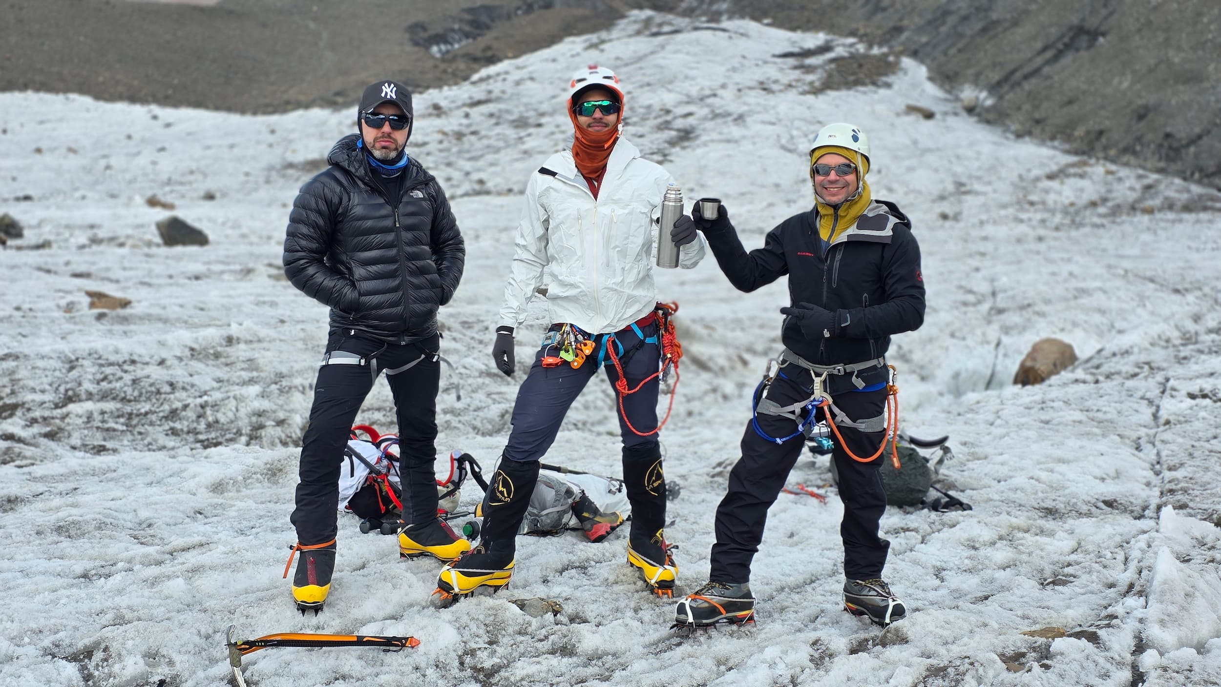 Hoje o dia será de treinamento em gelo e aclimatação. Subiremos até aproximadamente 4.500 metros de altitude, próximo ao acampamento, para treinar técnicas básicas de progressão em gelo e uso de cordas, que serão utilizadas mais acima na montanha. Incluído: café da manhã, almoço, jantar e pernoite em barraca.